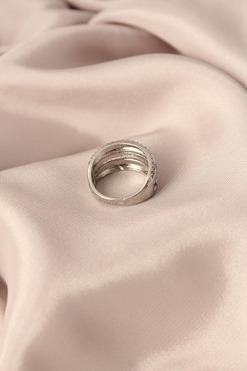 EBJ Silver Color Metal Adjustable Women's Ring with Zircon Stone - Wagga Wagga