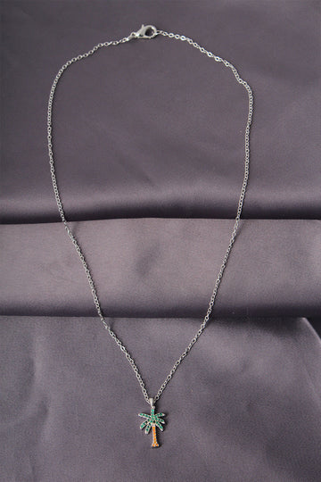 EBJ Silver Color Metal Zircon Stone Palm Tree Designed Women's Necklace - Sun City