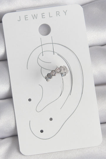 EBJ Silver Color Rice Honeycomb Pattern Zircon Stone Women's Cartilage Earring - Freehold