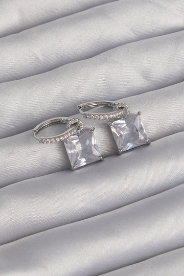 EBJ Silver Color Square Zircon Stone Ring Earring - Mâcon