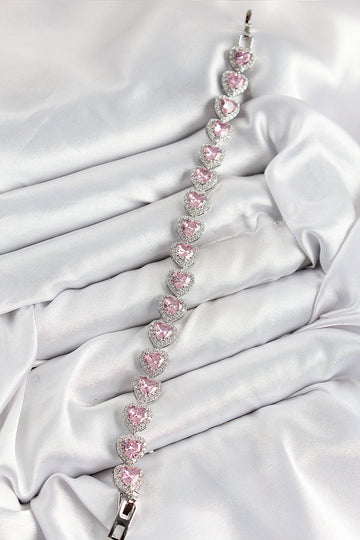 EBJ Silver Color VIP Series Women's Bracelet with Rice Zircon Stone Pink Heart Baguette Model - Bremen