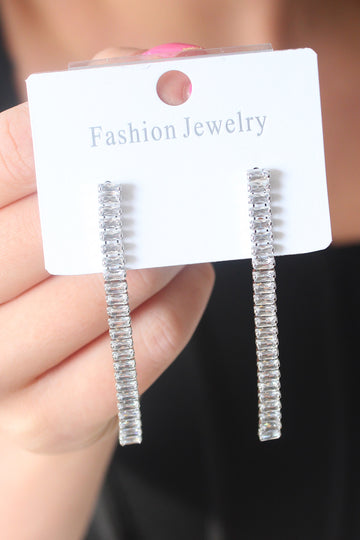 EBJ Silver Color Waterway Baguette Zircon Stone Women's Earrings - Hickory