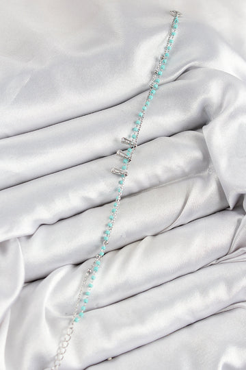 EBJ Silver Color Women's Bracelet with Rice Zircon Stone Blue Beads Model - Saanich