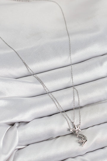 EBJ Silver Color Women's Necklace with Rice Zircon Stone Star and Moon Model - La Mesa