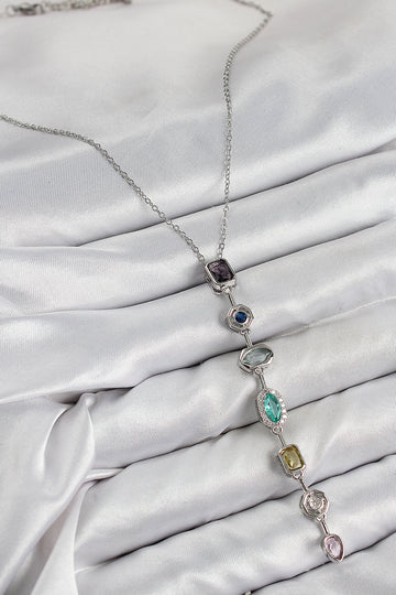 EBJ Silver Color Women's Y Necklace with Rice Colored Zircon Stone Model - Albany