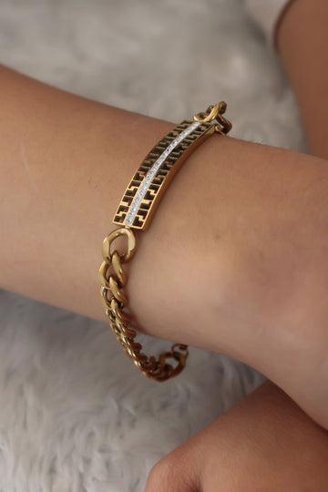 EBJ Steel Gold Color Chain Model Zircon Stone Women's Bracelet - Manfredonia