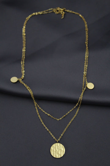 EBJ Steel Gold Color Patterned Oval Model Double Chain Designed Women's Necklace - Colmenar Viejo
