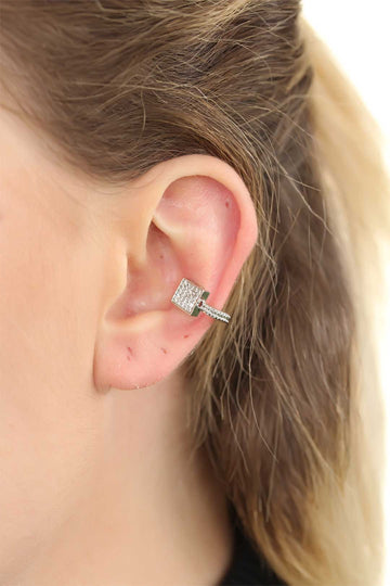 Crown your daily outfits with Stone Silver Color Metal Cartilage Earring. - The earring model in the visual is for sale for a single ear.