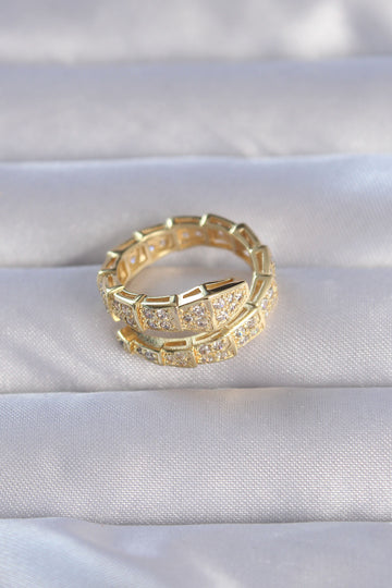 EBJ Thick Snake Model Adjustable Ring with Gold Color Zircon Stone - Châtelet
