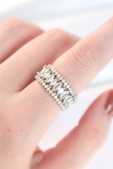 EBJ Thick Zircon Stone Silver Color Adjustable Ring - Acton
