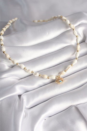 EBJ White Sea Shell Model Eye Figure Evil Eye Bead Detail Women's Necklace - Arles