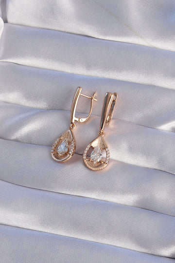 EBJ XUPİNG Rose Color Zircon Stone Drop Model Dangle Earrings - Noblesville