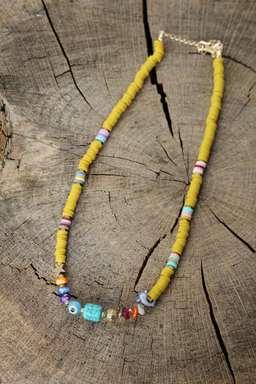 EBJ Yellow Beaded Blue Natural Stone Detailed Necklace - San Remo
