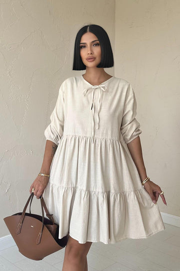 ELS Flame Linen Dress with Lace-Up - Beige - Maastricht