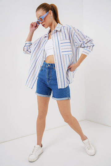 BGD Women Women's Striped Oversized Shirt 20295 - Blue - Tudela