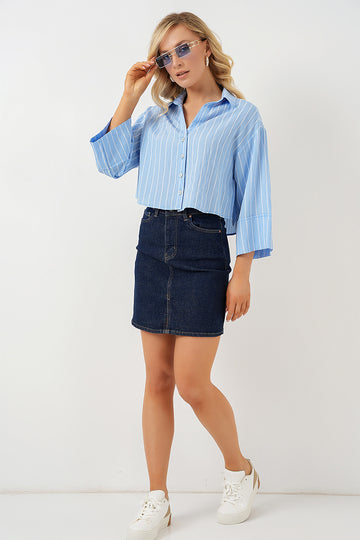 BGD Women Women's Striped Oversized Short Shirt 20326 - Blue - Teruel