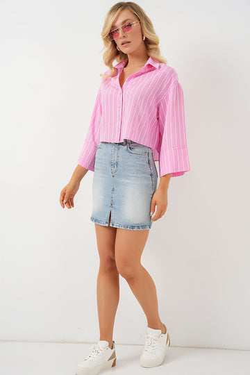 BGD Women Women's Striped Oversized Short Shirt 20326 - Pink - Bad Homburg