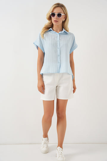 BGD Women Women's Striped Short Sleeve Shirt 20354 - Light Blue - Vitrolles