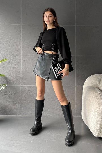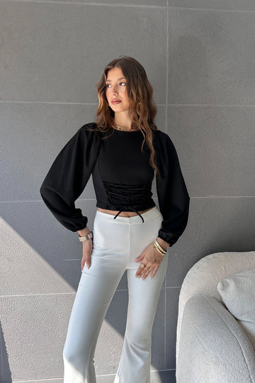 Black Back Belt Detailed Corset Crop Blouse BCDF-252207 - Tustin