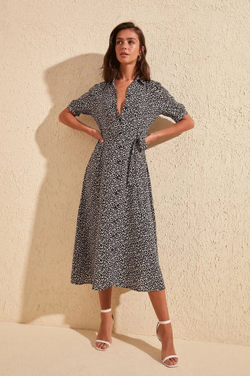 Black Belted Wrap Dress BCBSK-25700-3431 - Foothill Farms
