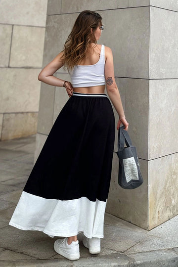 Black Belted Color Block Oversized Long Skirt BCBSK-25700-3535 - Parkland