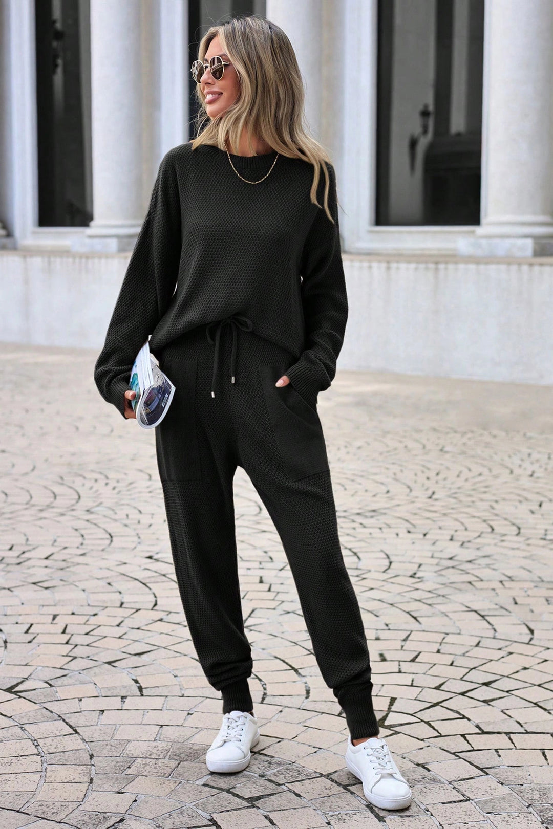 Black Bicycle Collar Blouse, Cardigan, and Pants 3 Piece Knit Set BCES-252041 - Desio