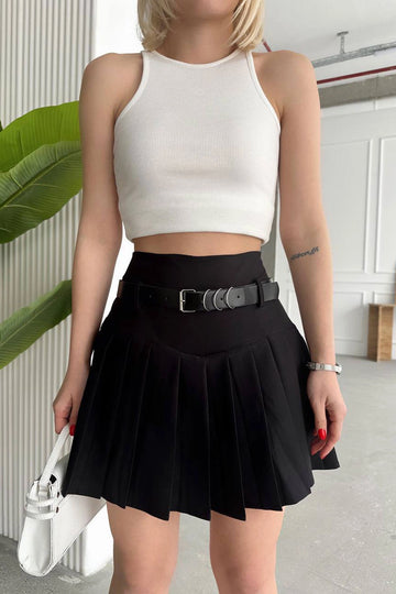 Black Belted Pleated Shorts Skirt BCHN-2525305 - Heidenheim