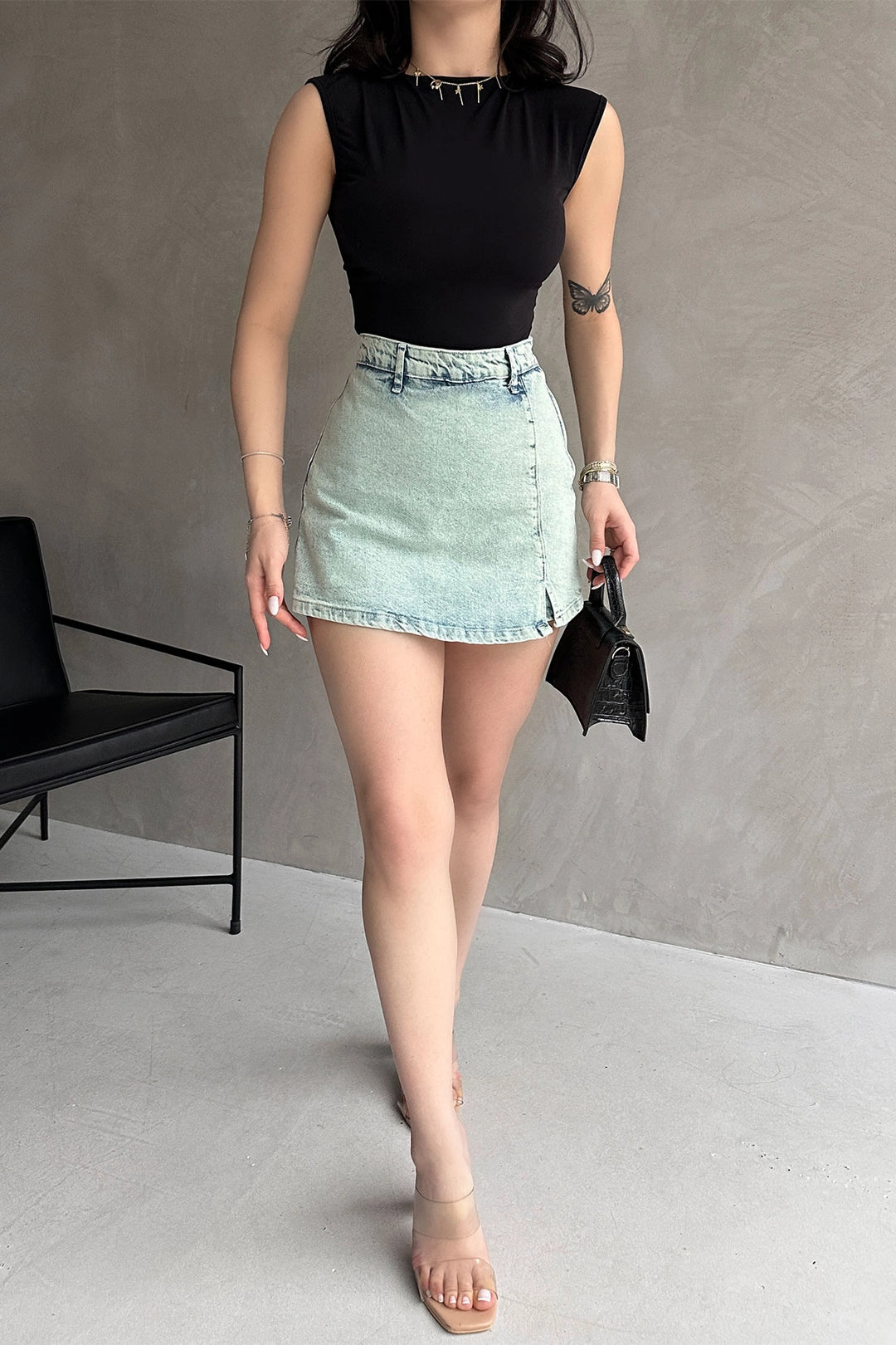 Black Belted Detailed Gabardine Shorts Skirt BCDF-247708 - Rastatt