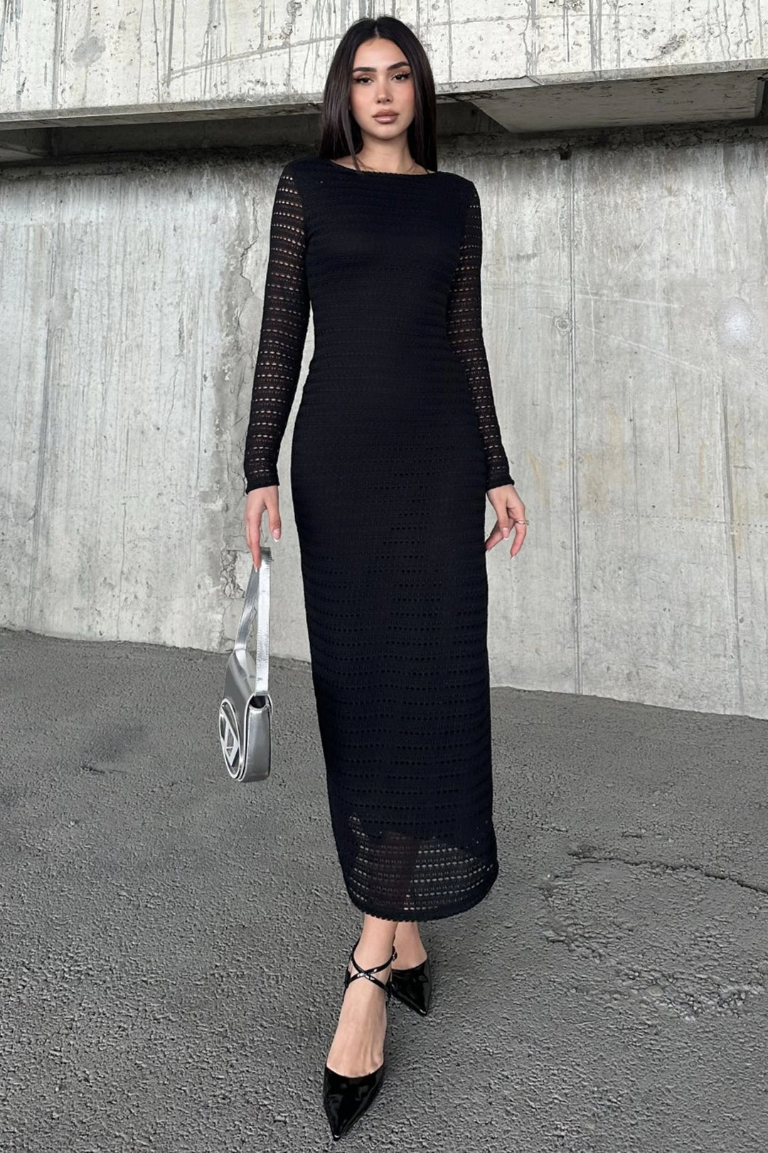 Black Backless Dress with Mesh Detail BCDF-252153 - Yajalón