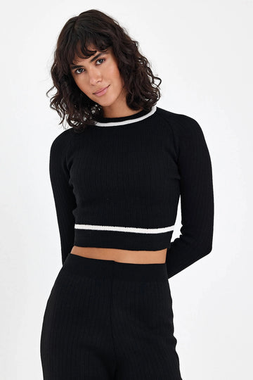 Black Bicycle Collar Striped Crop Top and Palazzo Pants Knit Top Set BCVL-T243141 - Borken