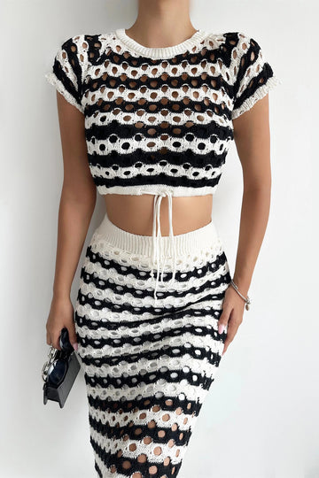Black Bicycle Collar Knitted Pattern Crop Sweater and Knitted Dress Set BCES-241003 - Rustavi