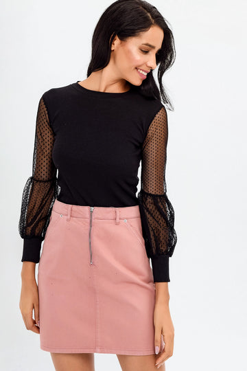 Black Bicycle Collar Tulle Detailed Blouse BCBSK-25700-T4008120 - Sherbrooke