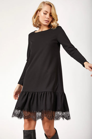 Black Bicycle Collar Skirt Lace Detailed Dress BCBSK-25700-T4007440 - South Hill