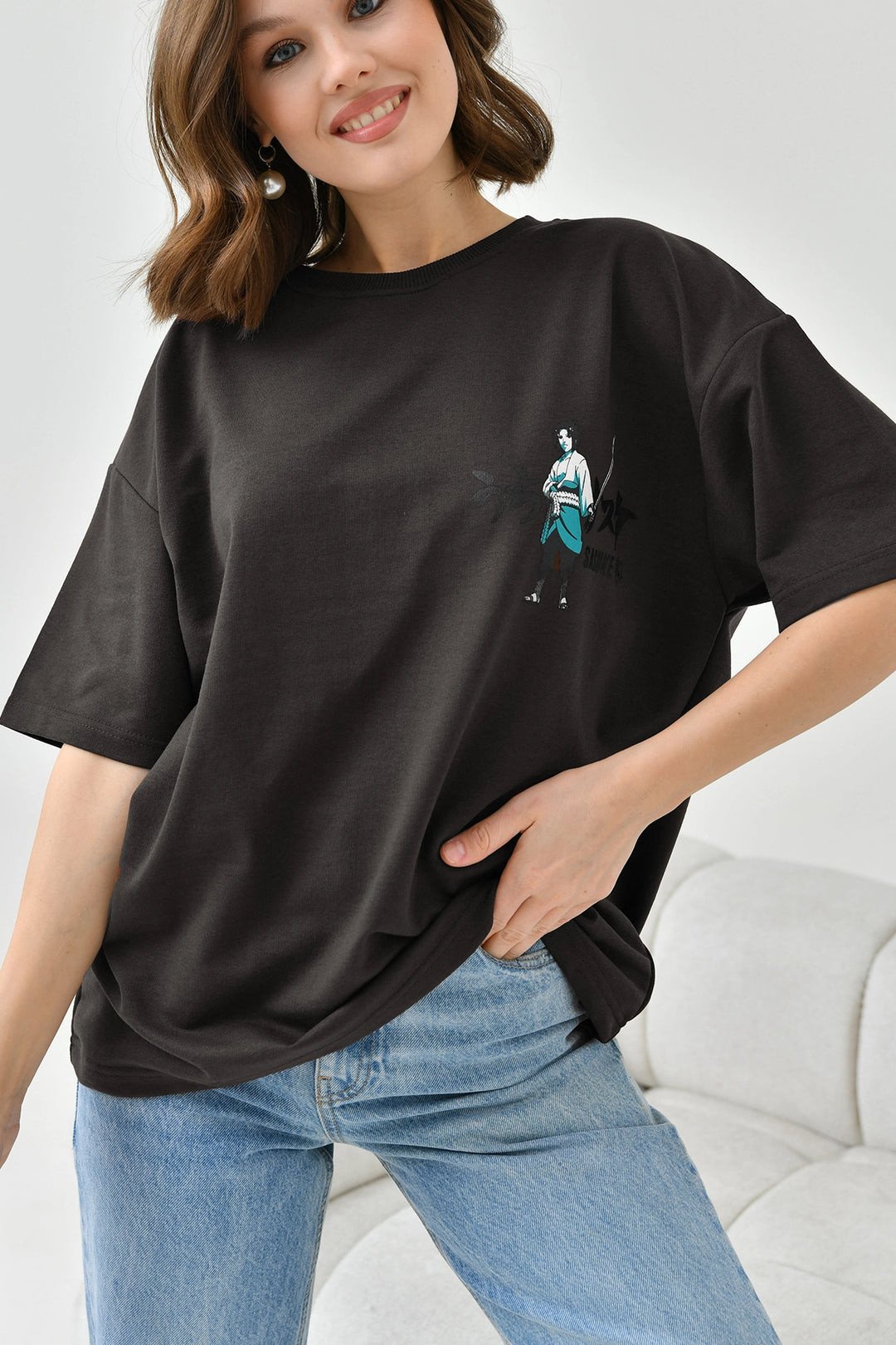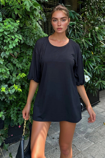 Black Bicycle Collar Two Thread Back Printed Oversize T-Shirt BC241126 - Umán