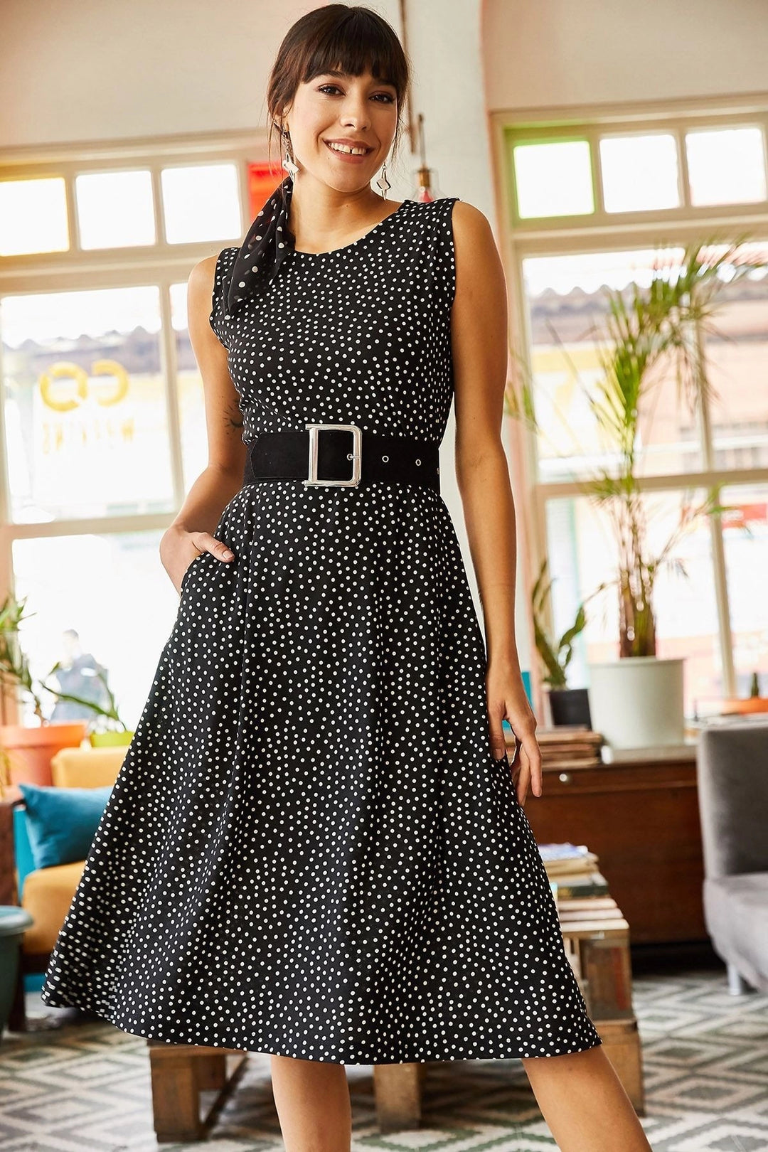 Black Bicycle Collar Sleeveless Dress BCBSK-25700-K6260 - Córdoba