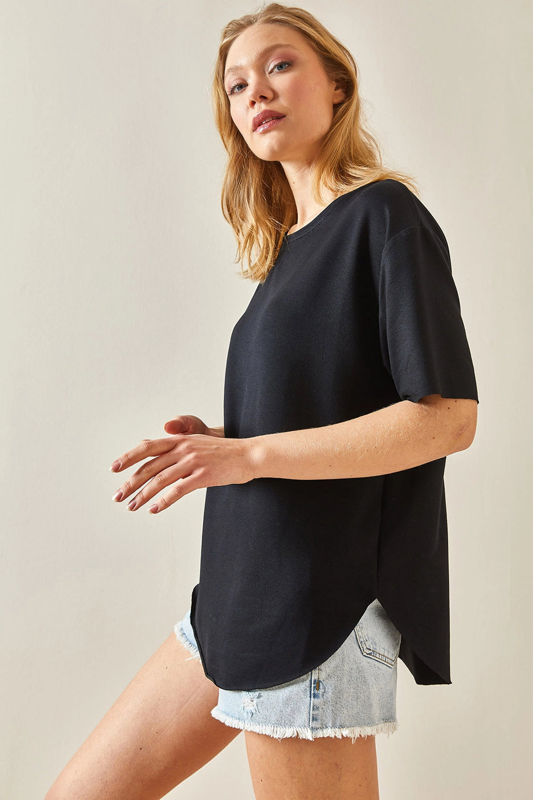 Black Bicycle Neck Oys Modal Oval Cut Soft Textured Basic T-Shirt BC241115 - Mount Laurel
