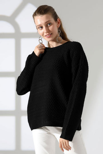 Black Bicycle Collar Embossed Patterned Sweater BCES-252034 - Aguadilla