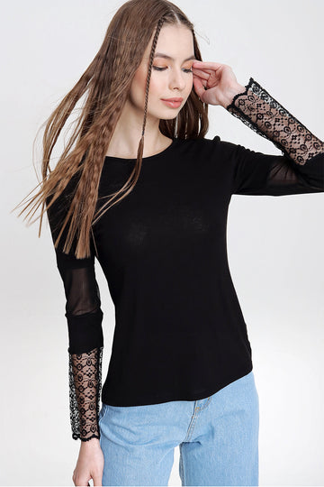 Black Bicycle Collar Lace Detailed Blouse BCBSK-25700-T4006720 - Schoten
