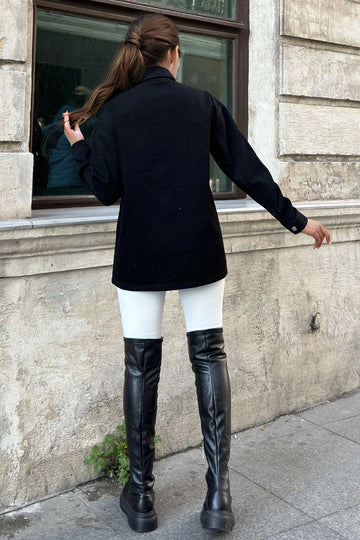 Black Chanel Fabric Buttoned Pocketed Crop Jacket Shirt BCBSK-25700-3540 - Kenosha