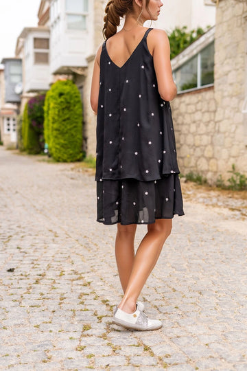 Black Chiffon Leather Strap Flower Embroidered Double Layer A-Line Plus Size Dress BCBSK-25700-3420 - Portage