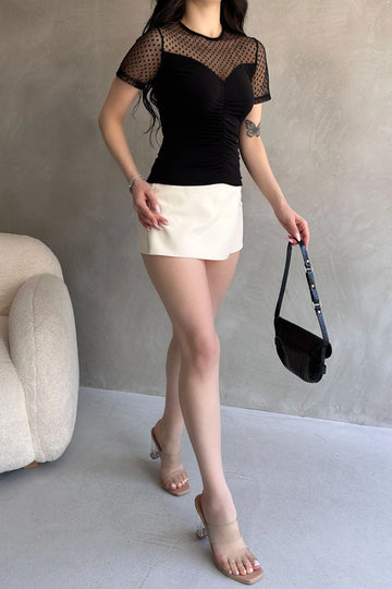Black Crepe Blouse with Front Ruched Detail and Black Tulle BCDF-252173 - West Orange