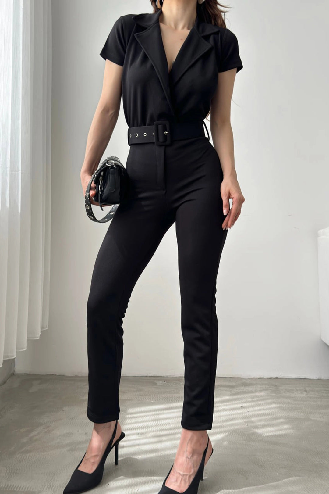 Black Collared Belted Jumpsuit BCDF-247023 - Port Charlotte