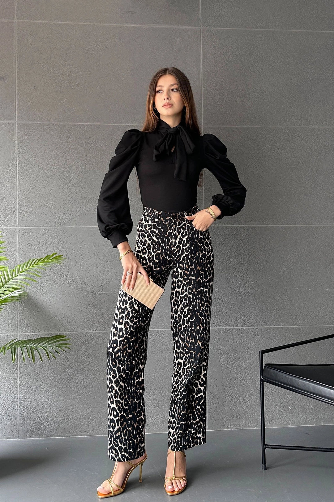 Black Collar Lace-Up Sleeve Cuff Detailed Blouse BCDF-242112 - Rezé