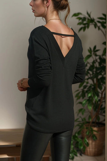 Black Cross Strap Crepe Blouse BCBSK-25700-SS-7159 - Rouen
