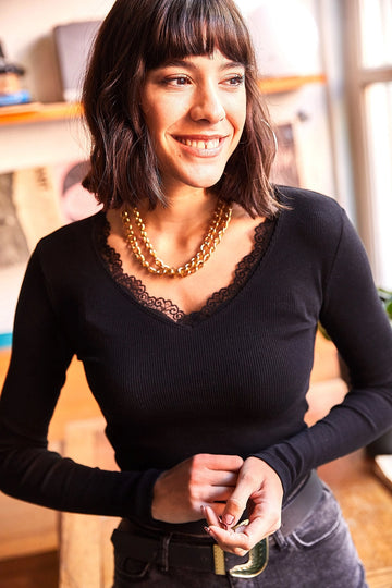 Black Cotton Eyelash Lace Strap Crop Blouse CO-2523254275 - Cádiz
