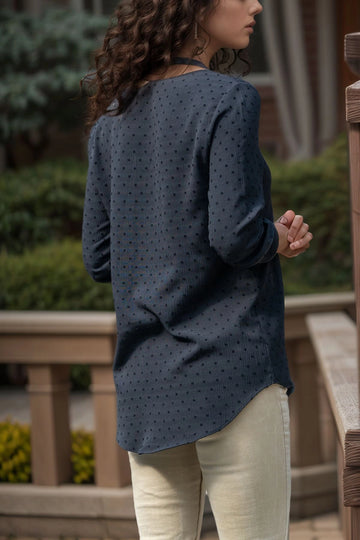 Black Collar Slit Crepe Blouse BCBSK-25700-2841 - Tepotzotlán