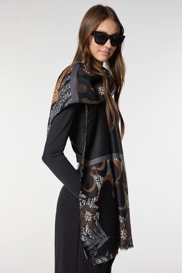 Black Flower Patterned Shawl BCNSV-2515219 - Tbilisi