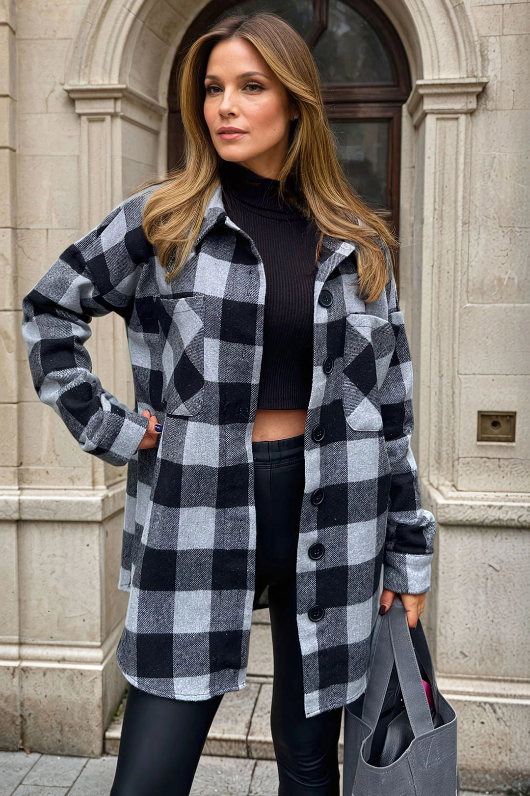 Black Gray Oversized Long Sleeve Shirt BCBSK-25700-3685 - Haguenau