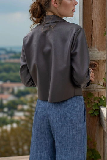 Black Front Guipure Skirt Ruffled Short Sleeve Linen Blouse CO-2520343456 - Barri