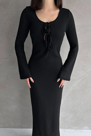 Black Front Lace-Up Detailed Maxi Dress BCDF-252151 - Skenderaj
